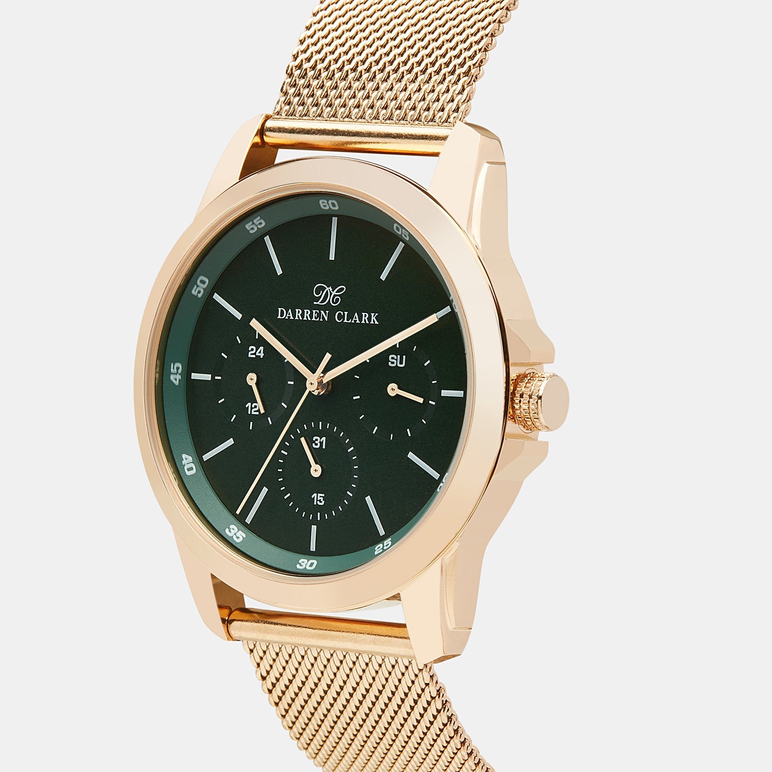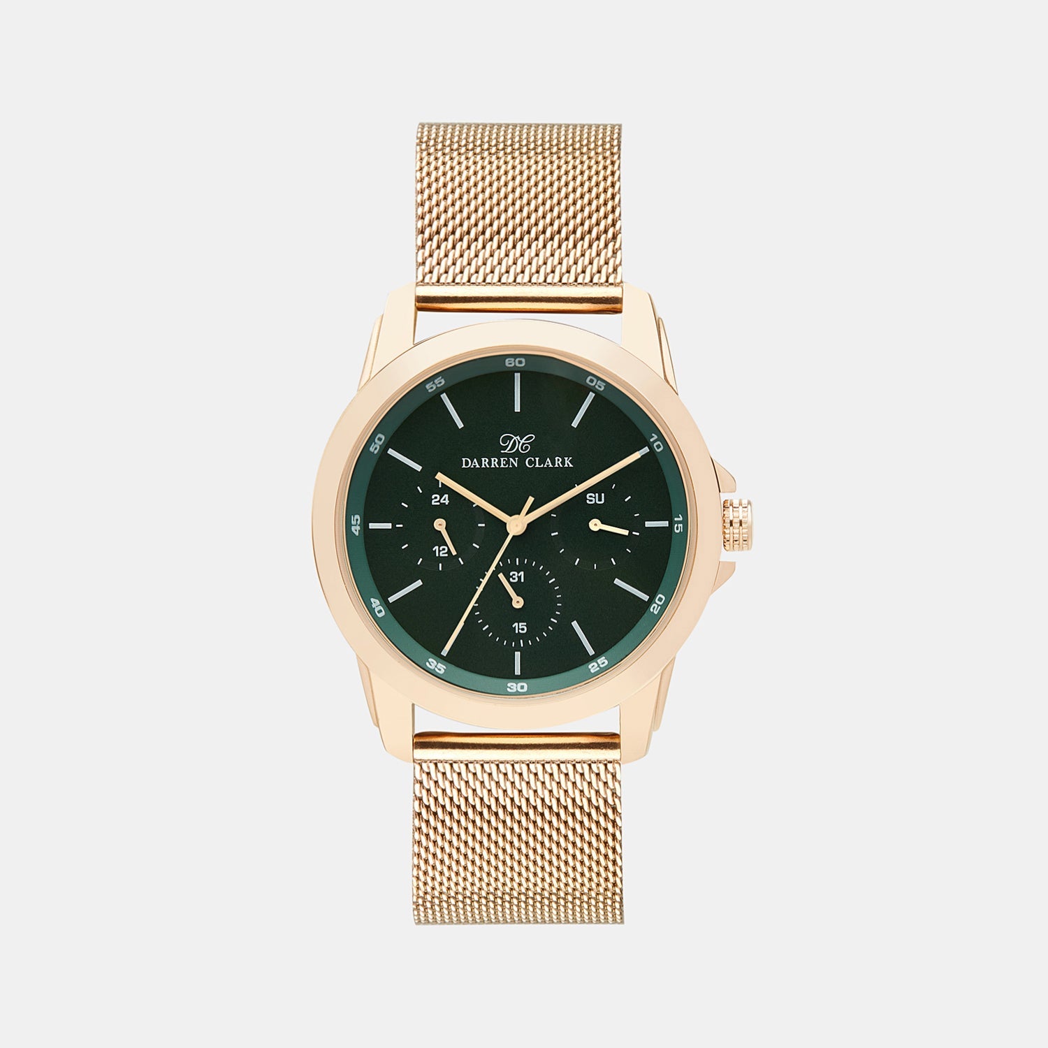 Enhance your fashion statement with the Darren Clark round Mesh rosegold watch, which is a sophisticated analog timepiece. Its remarkable features include a green dial with multifunctional attributes that operate through an efficient Japanese movement. With a water-resistant capacity up to 3 ATM, the watch houses a 38 mm dial diameter within an 11 mm rose-gold Mesh case. The 21 mm mesh strap in rosegold not only adds comfort but also delivers a sense of elegance. Moreover, the watch comes with a 1-year warranty from India. Made in India.