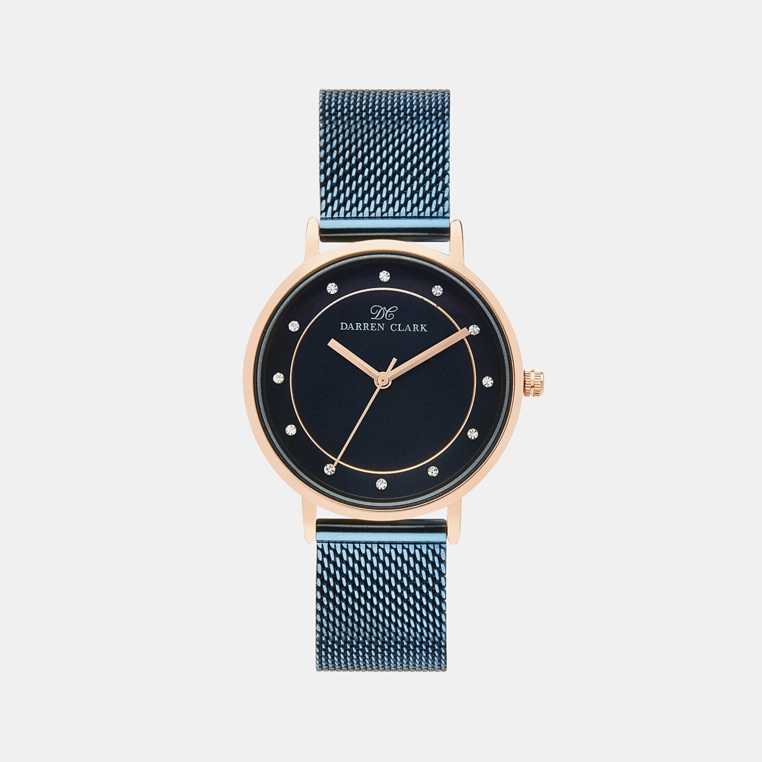 Sleek and sophisticated, the Round Mesh Blue Analog watch from Darren Clark perfectly combines style and function. Its Japanese movement ensures accurate timekeeping while its 3 ATM water resistance makes it practical for everyday wear. The 18 mm blue mesh strap complements the 8 mm round Mesh case thickness. For added elegance, the dial is studded with diamonds and finished in rose gold. 1-year warranty included. Dial diameter is 34 mm. Made in India.