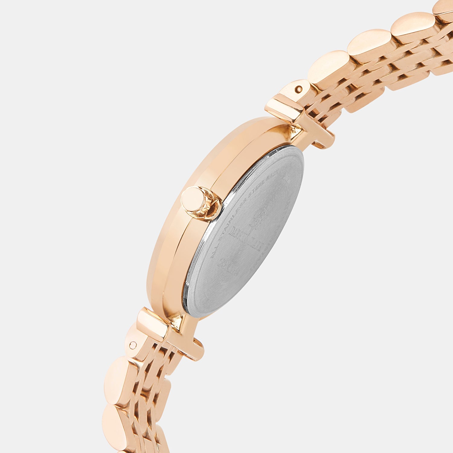 With its elegant, feminine design, the Round Stainless Steel Rose Gold Watch is ideal for any occasion. The 34 mm dial diameter and 9 mm case thickness make it a discreet yet stylish choice. The Analog display is operated by a Japanese Quartz movement and boasts a 3 ATM water resistance. The metal strap is finished in rose gold for a touch of luxury. Strap Width: 19 mm. 1 Year warranty. Made in India.