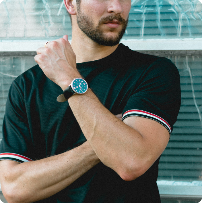 Men Quartz Grey Dial Analog Leather Watch 1005T-L0315